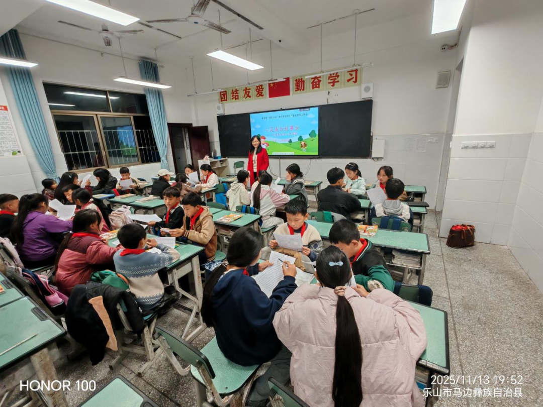近日,乐山市草堂高级中学心理教研组长张荣芳应邀走进马边彝族自治县建设镇光辉中心校,为当地彝乡留守孩童开展了两场《心灵成长故事会——小学生故事心理团辅》活动。此次活动旨在深化校际心理健康教育协作,为山区孩子送去心灵关怀,助力其健康成长。