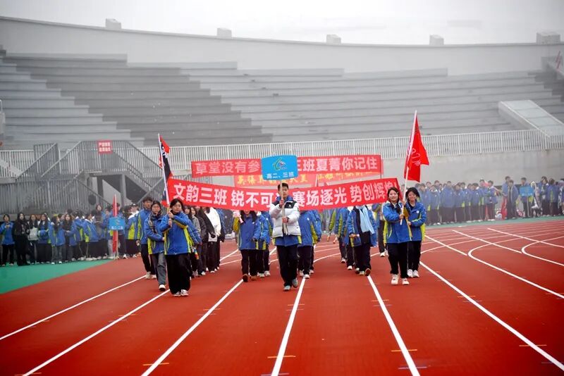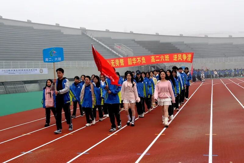 开幕式上,在雄壮的运动员进行曲中,校旗、校徽方阵率先引领入场,各年级班级方阵依次经过主席台。学生们步伐整齐、口号铿锵,以富有创意的展演形式彰显出蓬勃向上的精神风貌。