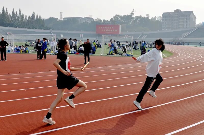 本届运动会赛事设置科学完备,兼顾竞技性与普及性。竞赛以年级为单位、班级为参赛主体,设有100米、200米、400米、800米、1500米、4×100米接力等径赛项目,以及跳高、跳远、铅球等田赛项目,并融入班级跳长绳、教职工“过障碍投球”等趣味集体项目,有效提升了师生参与度。