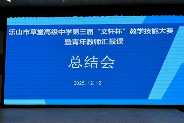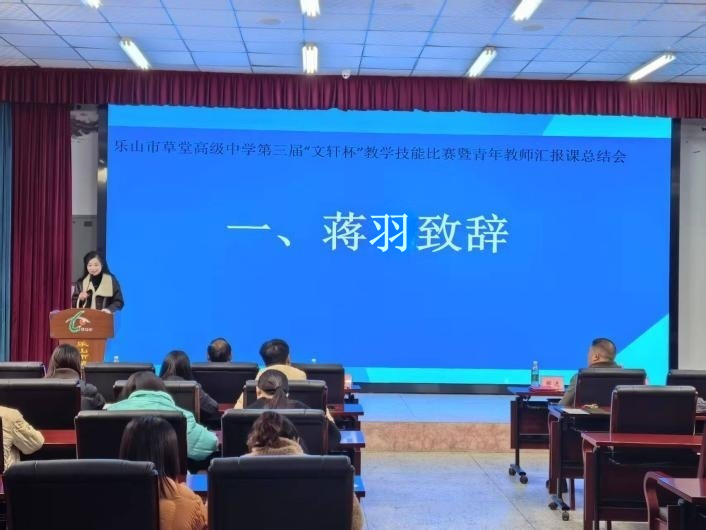 12月12日,乐山市草堂高级中学第三届“文轩杯”教学技能大赛暨青年教师汇报课总结会圆满举行。新华文轩乐山市分公司总经理邹进、客户经理唐梦潇,学校教学视导组组长陈克金、副校长蒋羽及全体教研组长、备课组长、青年教师、评委代表参会,共同总结赛课成果,探讨教师成长与教学创新路径。