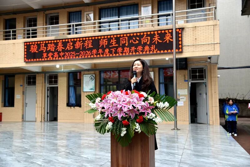 春回大地,万象更新。3月2日,草堂高中全体师生齐聚操场,举行2025-2026学年度春季学期开学典礼,共同开启新学期的征程。