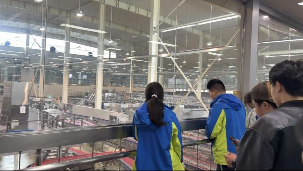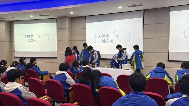 随后,同学们前往农夫山泉生产基地开展工业探秘。在工作人员讲解下了解优质水源的产地与来之不易,亲手参与PH值测试小实验,区分矿泉水与纯净水的差异,掌握水质相关科学知识;还走进瓶装水生产包装车间,近距离观摩自动化生产线,全流程见证矿泉水的诞生,感受现代工业的高效严谨与工匠精神。