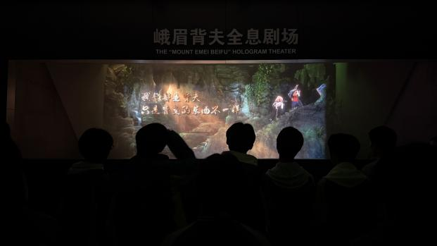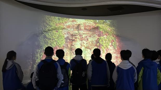 同学们首先走进数游峨眉科创研学场馆,沉浸式体验全息影像、VR视频等前沿科技打造的视觉盛宴,打破时空限制感受峨眉山与乐山大佛的山水魅力和人文底蕴,领略科技赋能文旅的独特魅力。